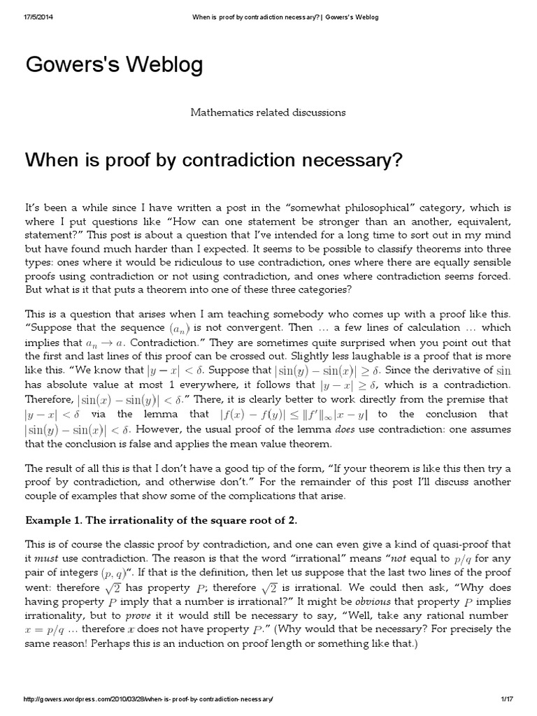 When Is Proof By Contradiction Necessary Gowers S Weblog