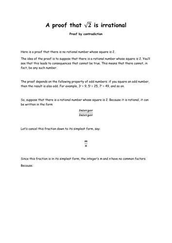 Planet Infinity My K H M S Math Class Proof Sqrt 2 Is An