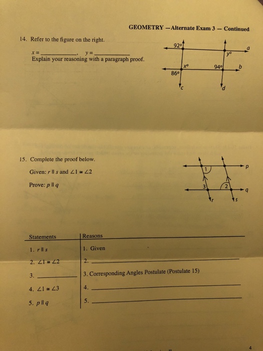 Solved Geometry Alternate Exam 3 Continued 14 Refer To