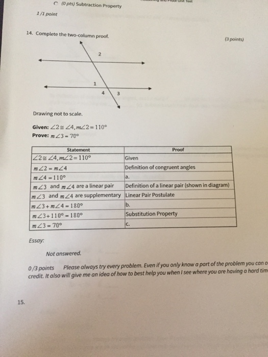 Complete The Two Column Proof Drawing Not To Scale Given 2