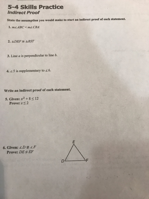 Solved 5 4 Skills Practice Indirect Proof State The Assum