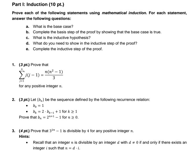 Solved Part I Induction 10 Pt Prove Each Of The Follo