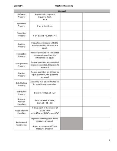 Notes Geometry 10 14 Properties Of Equality Two Column Proof