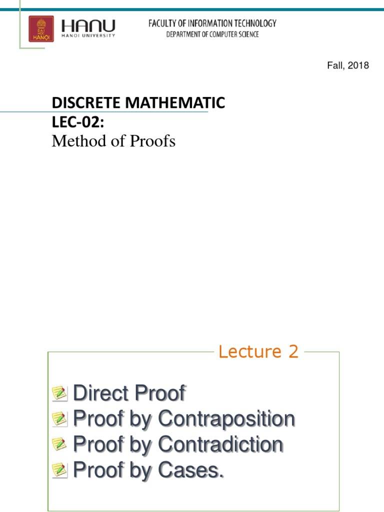 Methods Of Proof Discrete Mathematics Lecture Slides Docsity