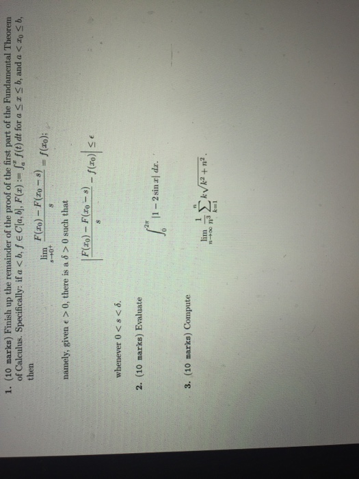 Proof The Fundamental Theorem Of Calculus Using Th Chegg Com