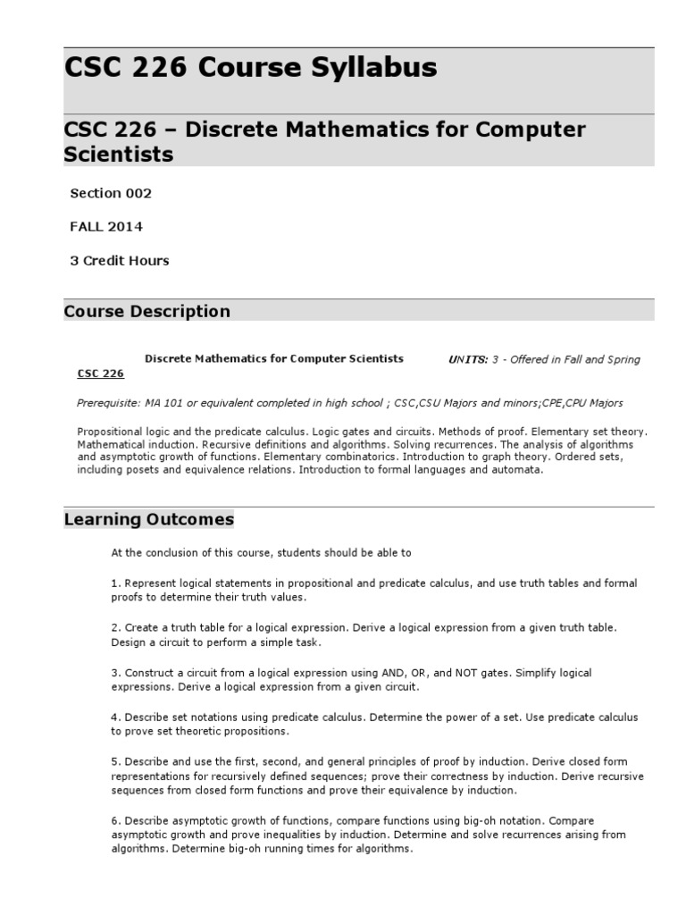 Csc 226 002 Syllabus Barnes 002 First Order Logic Logic
