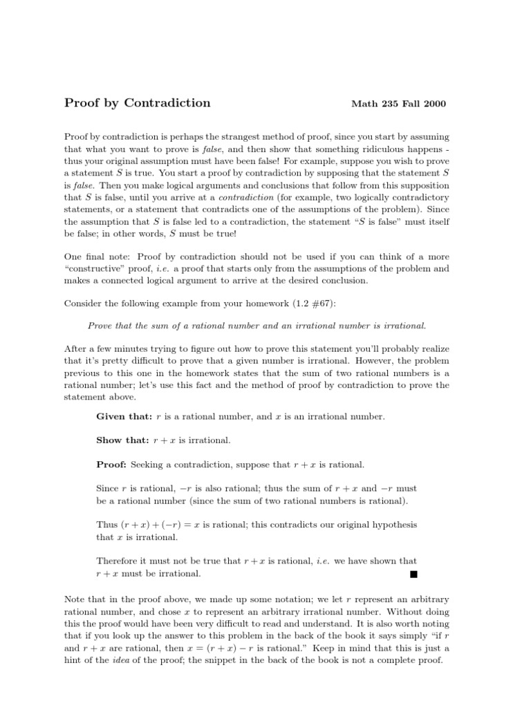 Proof By Contradiction 1 2 Proof Methods Unit 1 Proofs