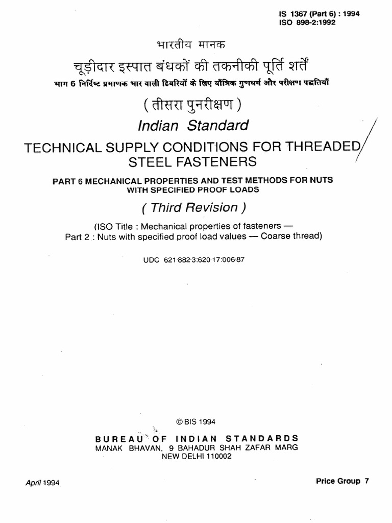 Is 1367 Part 6 1994 Mechanical Properties Test Methods