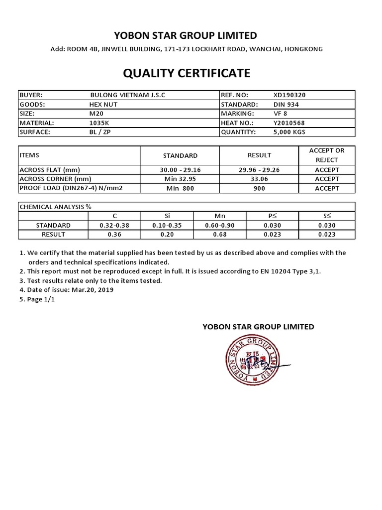 Bs En Iso 10485 2004 Cone Proof Load Test On Nuts