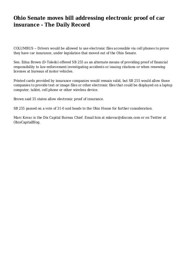Ohio Senate Moves Bill Addressing Electronic Proof Of Car Insurance