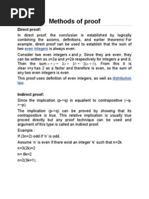 Contrapositive Proof Pdf Mathematical Proof Number Theory